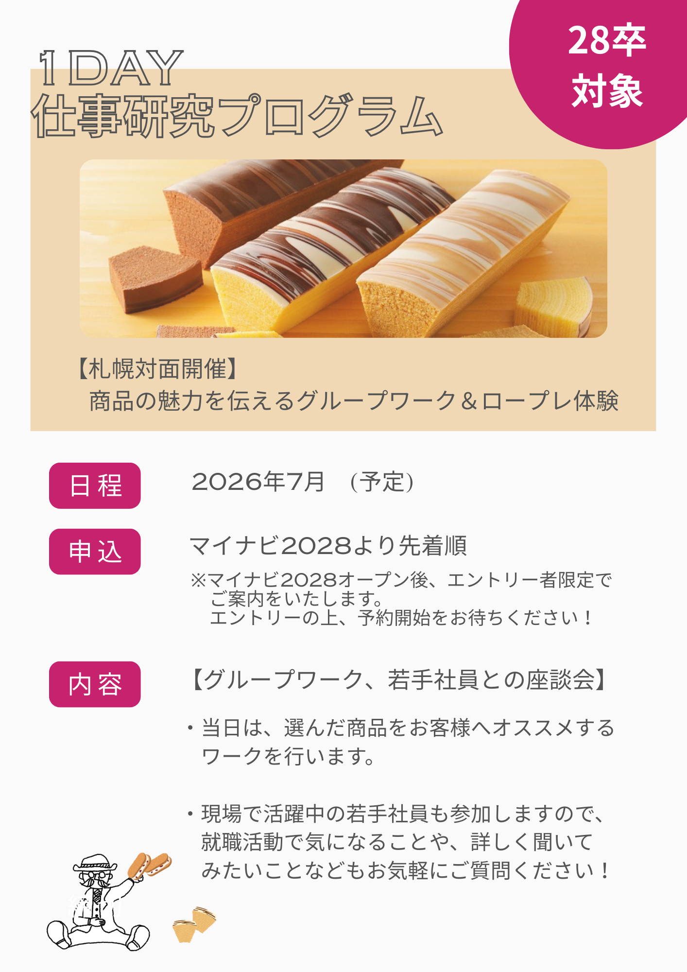 仕事内容:ケーキ飾りつけなどの仕上げ、お菓子生地作り、