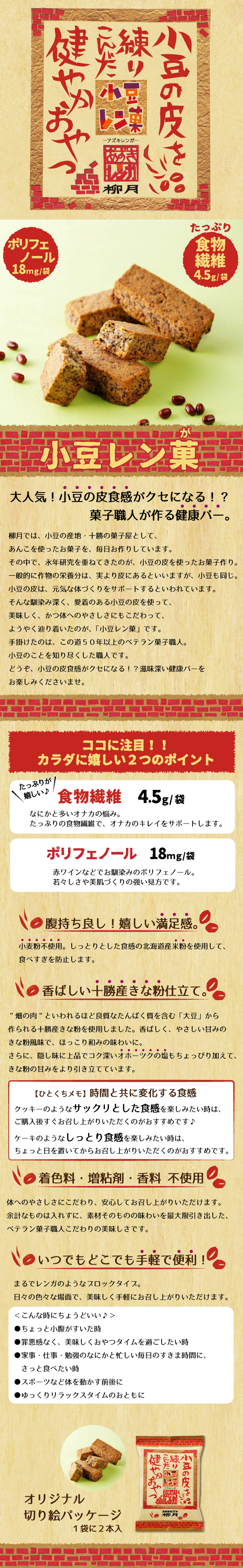 小豆の皮食感がクセになる、柳月ならではの健康バー。