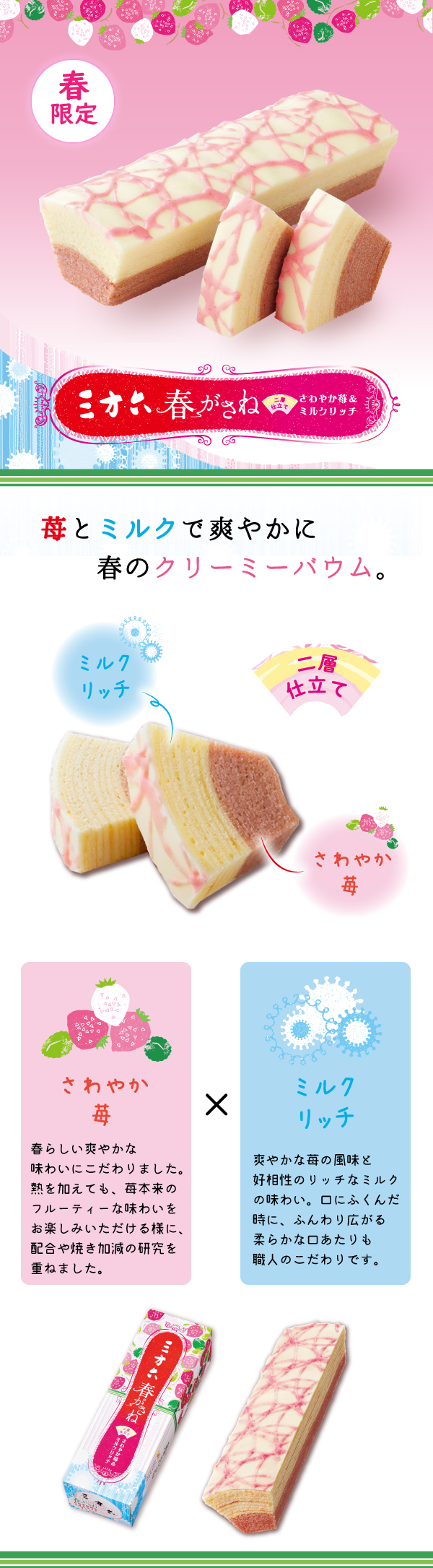 苺とミルクでさわやかにクリーミーに仕上げた春のバウムクーヘンです。