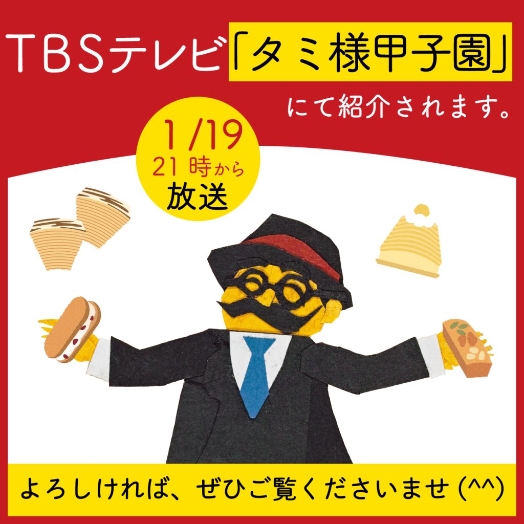 週明け月曜!1/19(月)21時~放送のTBSテレビ「タミ様甲子園」にて、柳月のお菓子が紹介されます。※TVer(無料配信サービス)でも2週間ご覧いただけます。